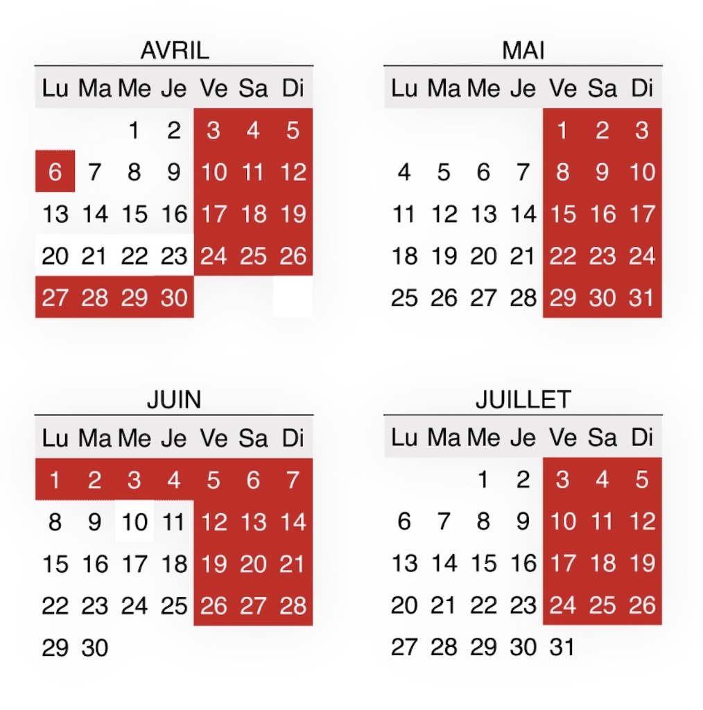 - En juin 2026 : La contribution d’entrée s’applique la semaine du 1er au 7, puis les 12, 13, 14, 19, 20, 21, 26, 27, 28.