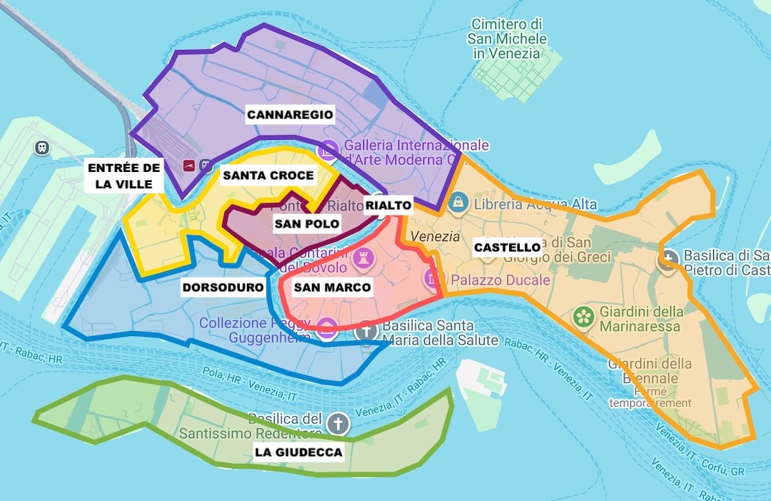Après 4 séjours inoubliables à Venise, voici les quartiers que je recommande tout particulièrement pour profiter au maximum de la ville :